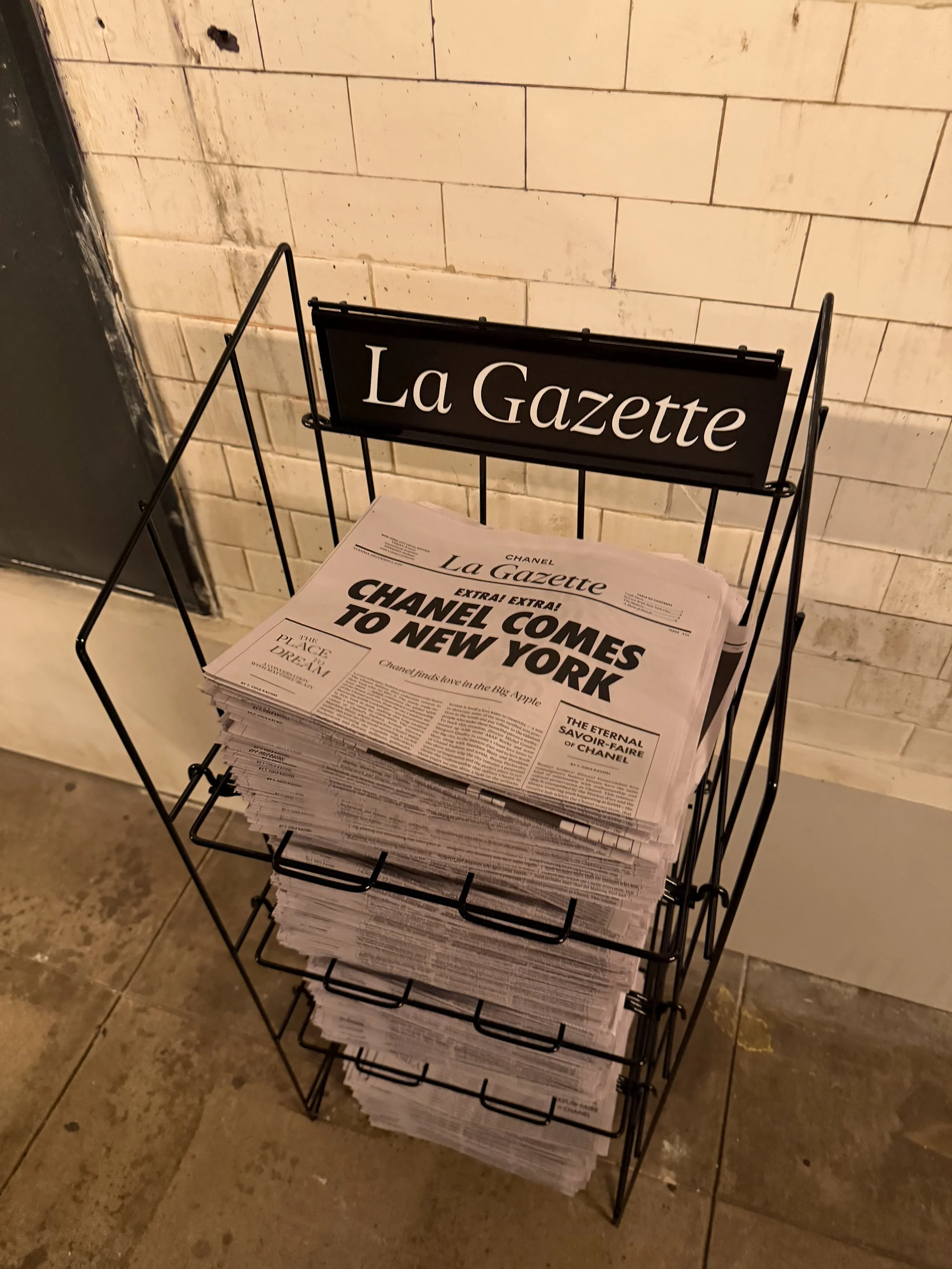 In December 2025, I worked with T Brand Studio on a fully integrated collaboration with Chanel, celebrating the brand's return to New York City for the grand reveal of its 2025 Métiers d'art collection. The centerpiece was La Gazette, an eight-page special section featuring interviews I conducted with Artistic Director Matthieu Blazy and President Bruno Pavlovsky, alongside contributions from Michel Gondry, A$AP Rocky, Margaret Qualley and fashion writer Christopher Bollen — all set within the collection's cinematic New York universe. The gazette was delivered as part of the show invitation and, unexpectedly, made its way into the hands of models on the runway itself. The project also included a four-part docu-series produced with filmmaker Joshua Charow and a Paid Post Hub housing the full suite of content. It remains the most ambitious project of my time at T Brand.